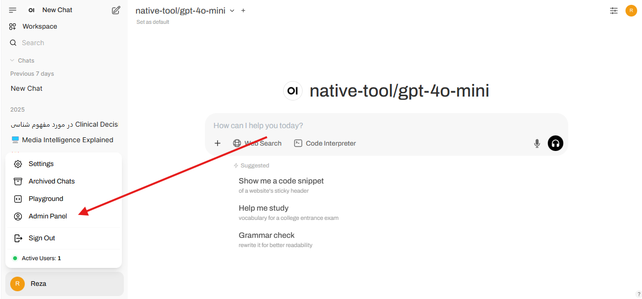 بعد از این مرحله اتصال open webui با ماشین تون برقرار هست و میتونید برید تو صفحه اول با مدل چت کنید.